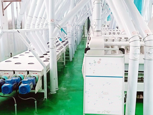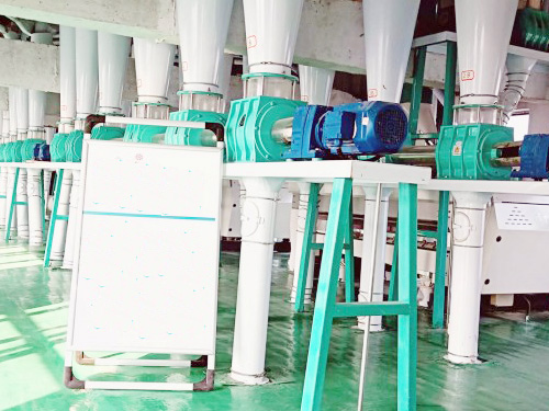 在倉儲(chǔ)、干法清理,制粉及面粉配粉的各道工序完全自動(dòng)化,日加工小麥200噸的面粉加工生產(chǎn)線。